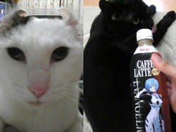 白の猫耳巻いてみた。うちの猫達は意外に嫌がりません。
