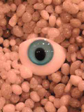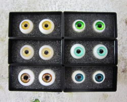 向かって左側:造形村グラスアイ 右側:自作アイ(虹彩なし)
